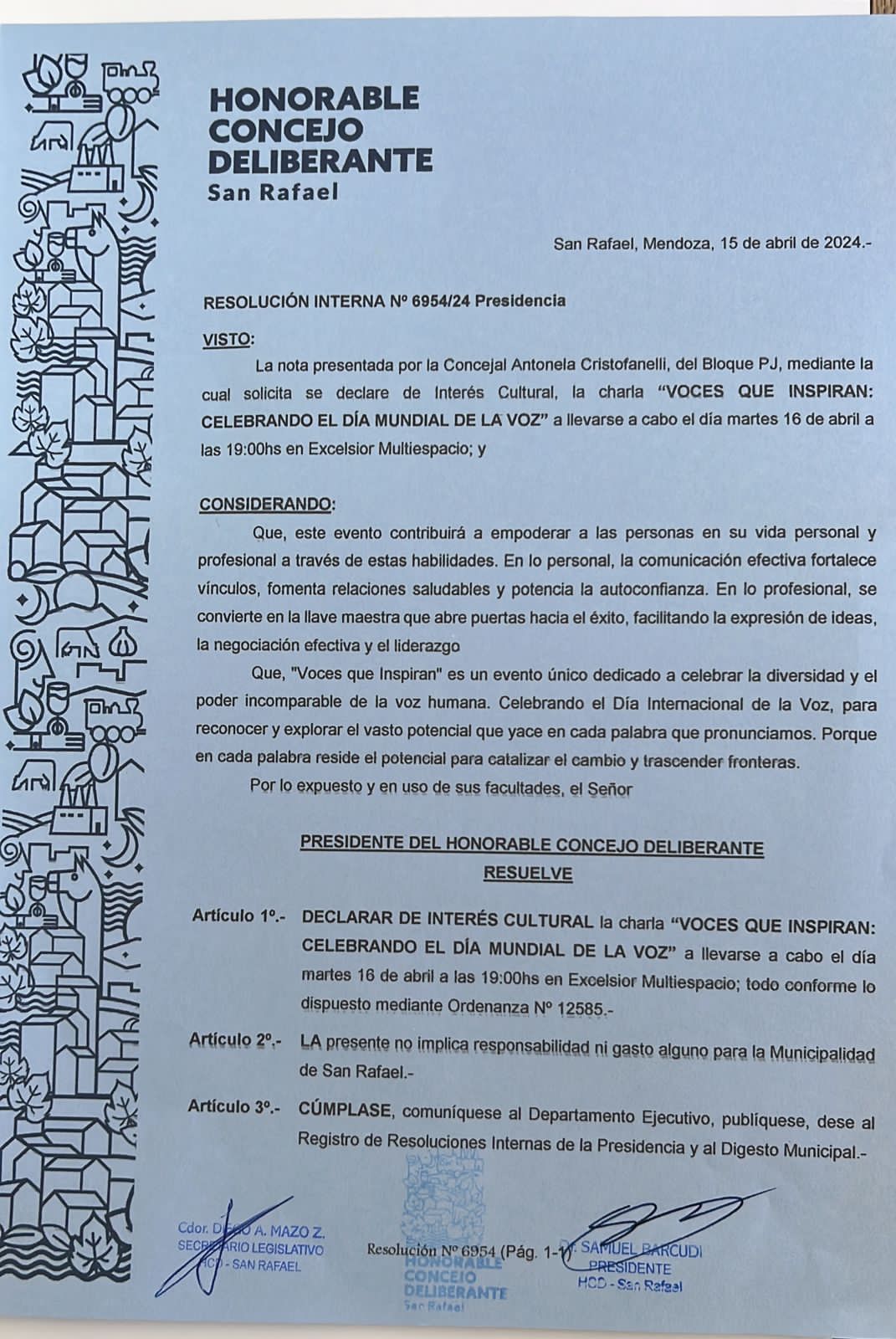 Desde el Honorable Concejo Deliberante, se declaró de interés cultural el evento denominado “Voces que inspiran: celebrando el día mundial de la voz”.