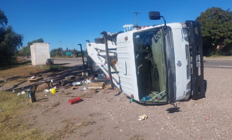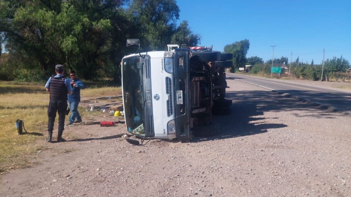 Vuelco de un camión en San Rafael: un hombre resultó herido tras una maniobra evasiva