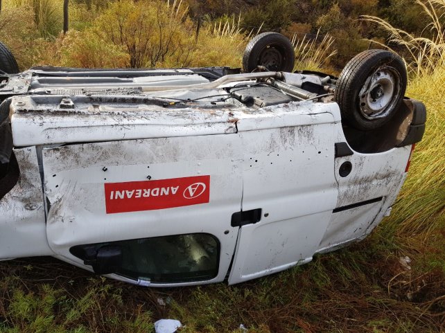 Al arribar constataron que una camioneta Peugeot Partner, perteneciente al correo Andreani se encontraba volcada sobre un barranco.