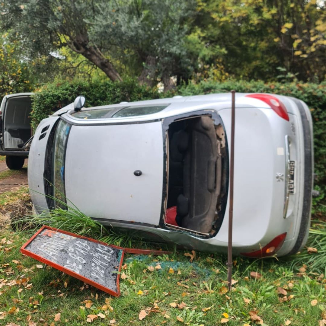 El siniestro involucró a un Peugeot 207 conducido por una mujer de 44 años identificada como M.S.A, quien iba acompañada por una menor de 10 años. Según las primeras averiguaciones, el vehículo circulaba por una calle de doble sentido cuando, por razones que aún se investigan, la conductora perdió el dominio del rodado, el cual terminó volcado sobre su lateral izquierdo dentro de una zanja, en el costado norte de la calzada.
