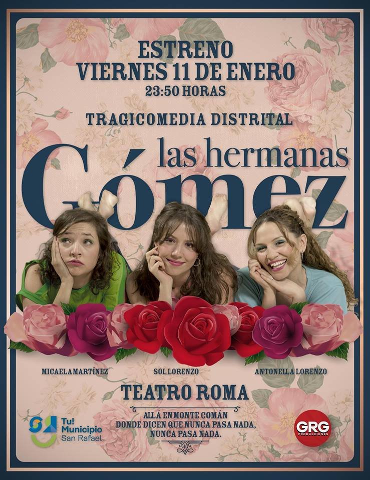Las Hermanas Gómez se presentarán en el Teatro Roma con esta obra que se estrenará el viernes 11 de enero a las 23.50. Se trata de una producción de GRG Producciones y cuenta con el apoyo de la Municipalidad de San Rafael.