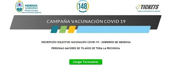 Desde hoy los adultos mayores de 70 años pueden inscribirse para vacunarse contra el covid en Mendoza. El Ministerio de Salud habilitó el mecanismo de inscripción y luego cada persona recibirá la información sobre dónde y cuándo vacunarse. También se inició la inscripción para trabajadores de la salud mayores de 50 años