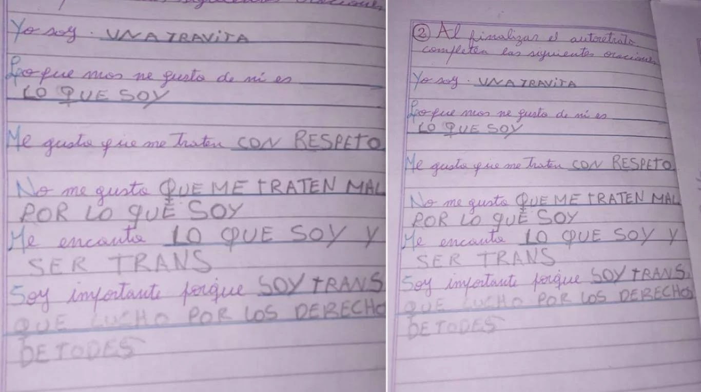 “Yo soy una travita”, la respuesta de una nena de 7 años en una tarea de la escuela