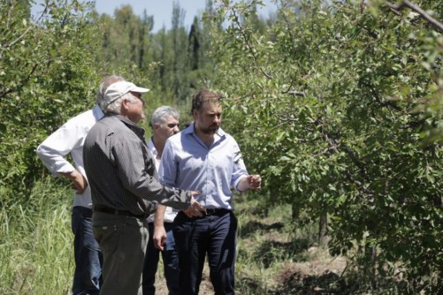 El subsecretario de Agricultura y Ganadería junto al coordinador del Ministerio de Economía de la zona Sur, Vicente Russo, el diputado nacional Federico Zamarbide y otros funcionarios informaron que está abierto el registro para efectuar la denuncia por daños en cultivos.